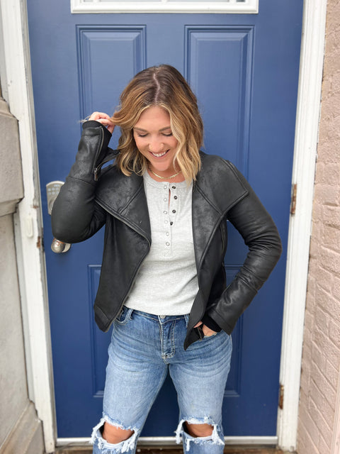 There is nothing quite like this buttery soft, stretchy faux leather jacket that is the perfect fit, cut, material and more. The styling opportunities are truly endless! TTS. Acacia...