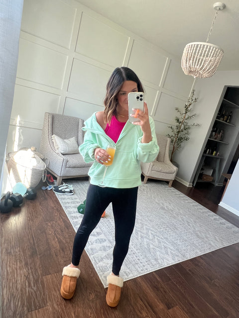 cropped hoodie 48% modal, 45% polyester, 7% spandex french terry quarter zip thumb holes